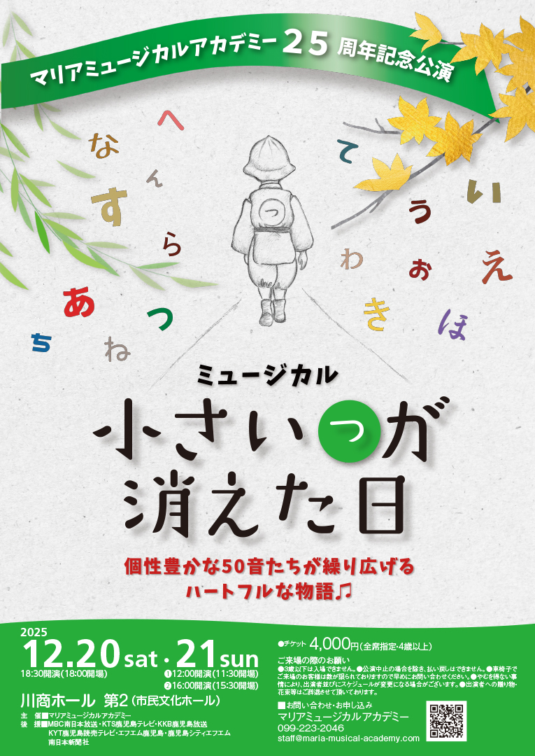 このたび、2025年度の公演作品が 「ちいさい『つ』が消えた日」に決まりました。